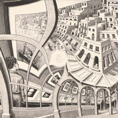M.C. Escher's most famous work, Print Gallery (1956), is a lithograph with a blank circle in the center of the work. Why did Escher leave the center blank? And can we use machine learning to figure out the artist's intent and complete the work?