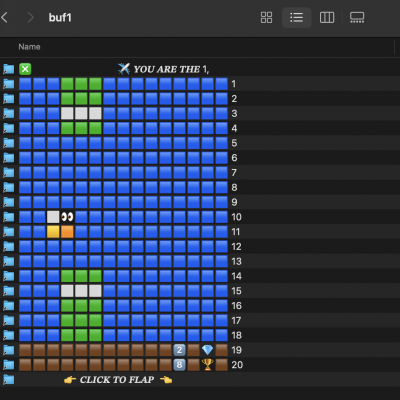 I'll do my absolute best to make this talk fun for everyone - but I'll also be going deep on how some of these hacks work. We'll cover how to implement double buffering inside Finder to push a game to 4 frames a second, recursive Google Sheets formulas that track the time that a cell changes, obscure browser specifications for custom website search engines, and the power hidden in advanced font features.