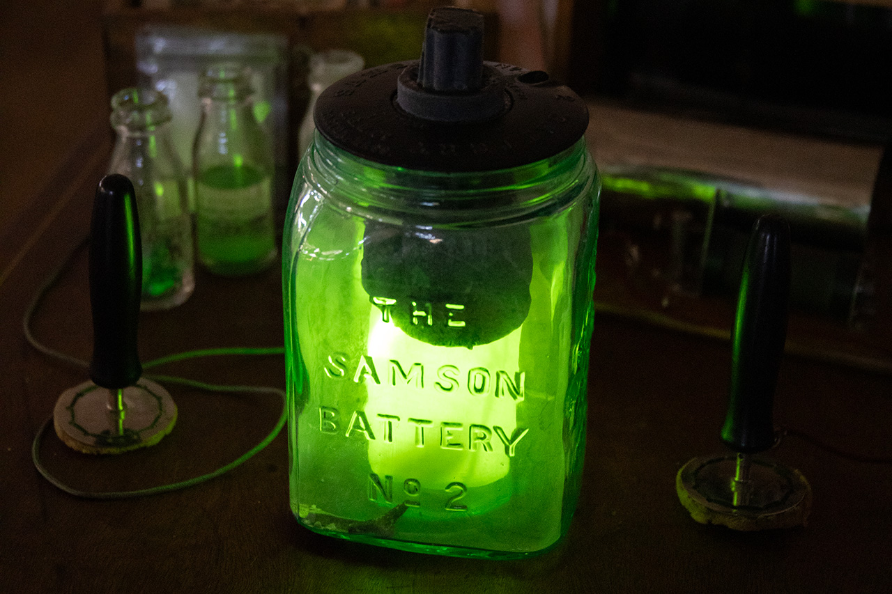 The Green Tablet presents a collection of objects grown from research into assemblages around lithium. The project finds connections deep in the history of how at times of crisis, we leaned on extraordinary claims of one-size-fits-all solutions to bodily and societal problems. From quack medical devices that use batteries to heal all diseases, to 18th century medication trade cards, the historical objects are subtly modified but hardly noticeable without close examination. In reviving antique objects that were the products of make-believes, the project questions at which points do fake stories become real and real stories start to sound fake.