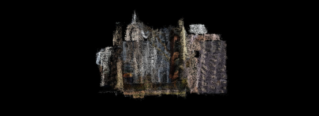 A video that contains point cloud collages and is meant to be projected on a 7.8 X 9.8 foot wall. The projection is accompanied by the physical prints of the collages.